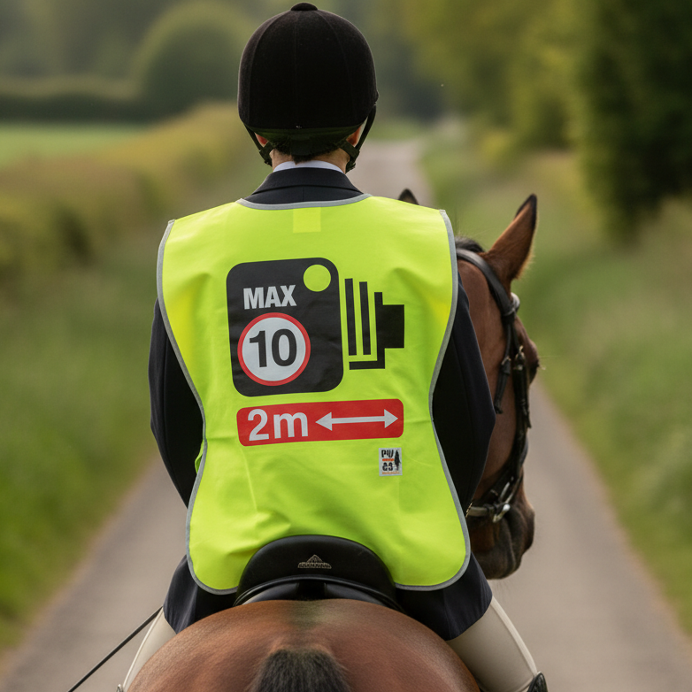 2025 Official PW&S High Visibility Hi Vis Equestrian Reflective Vest Tabard Waistcoat CAMERA, 10mph, PLEASE PASS WIDE & SLOW