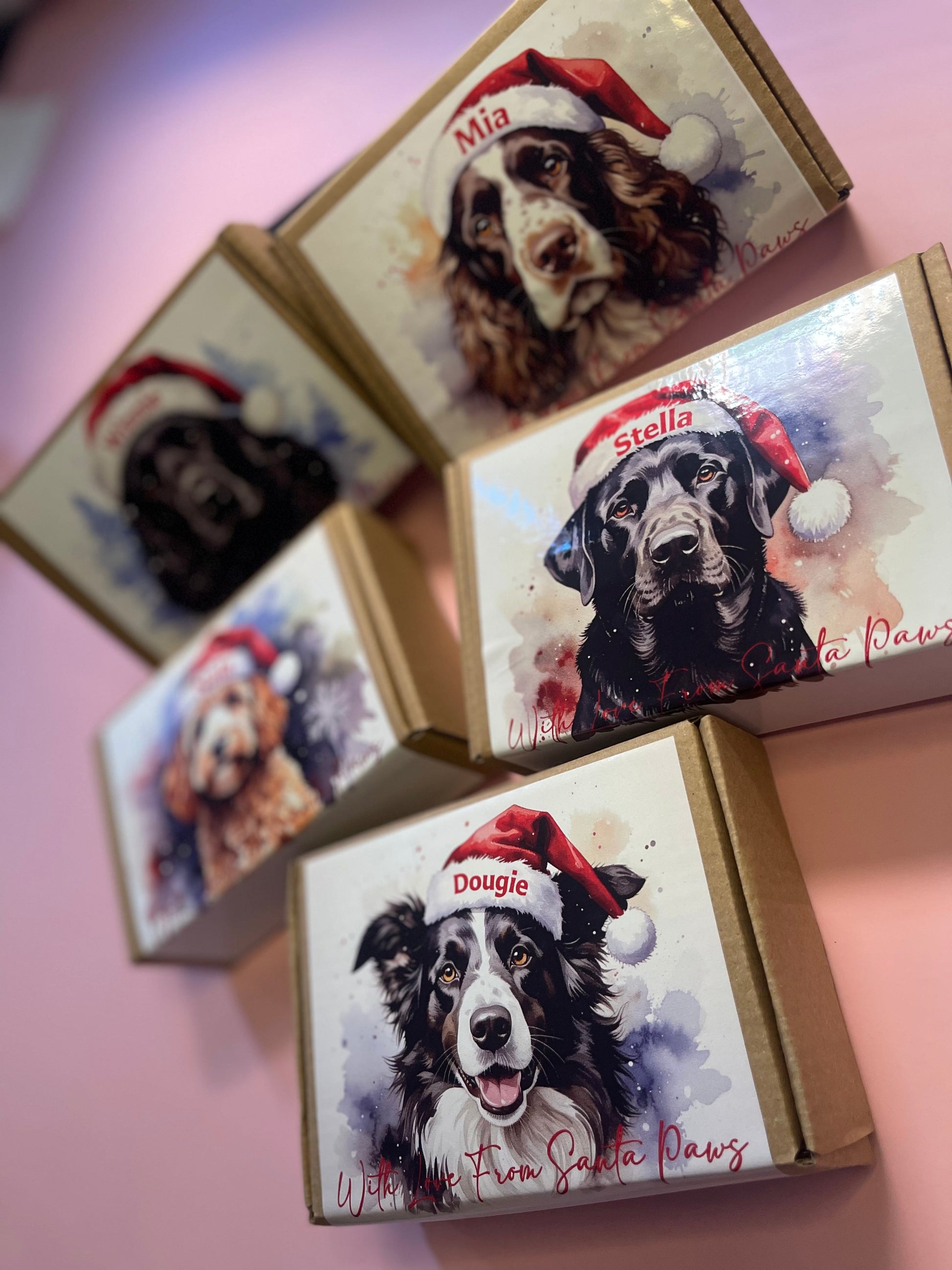 Spoil your pooch this festive season and wish them a Yappy Christmas with a personalised gift box packed with tasty goodies, our premium treats are packed full of delicious meaty flavours. Our treat boxes are personalised with your pooches name in a high quality, glossy sticker. Inside you'll find tasty treats wrapped in a beautiful tissue gift wrap.