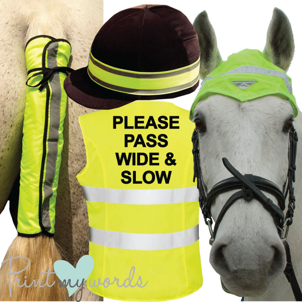 Wearing High Viz means  you and your horse will be much more visible to drivers even in the brightest of sunlight. The fluorescent colour is seen by the human eye up to 3 seconds sooner than any other colour. Keep yourself and your horse safe, and always wear hi-vis clothing.