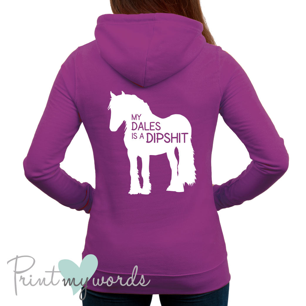This hilarious equestrian hoodie is a fantastic addition to your wardrobe. It reads 'My Dales Is A Dipshit'.