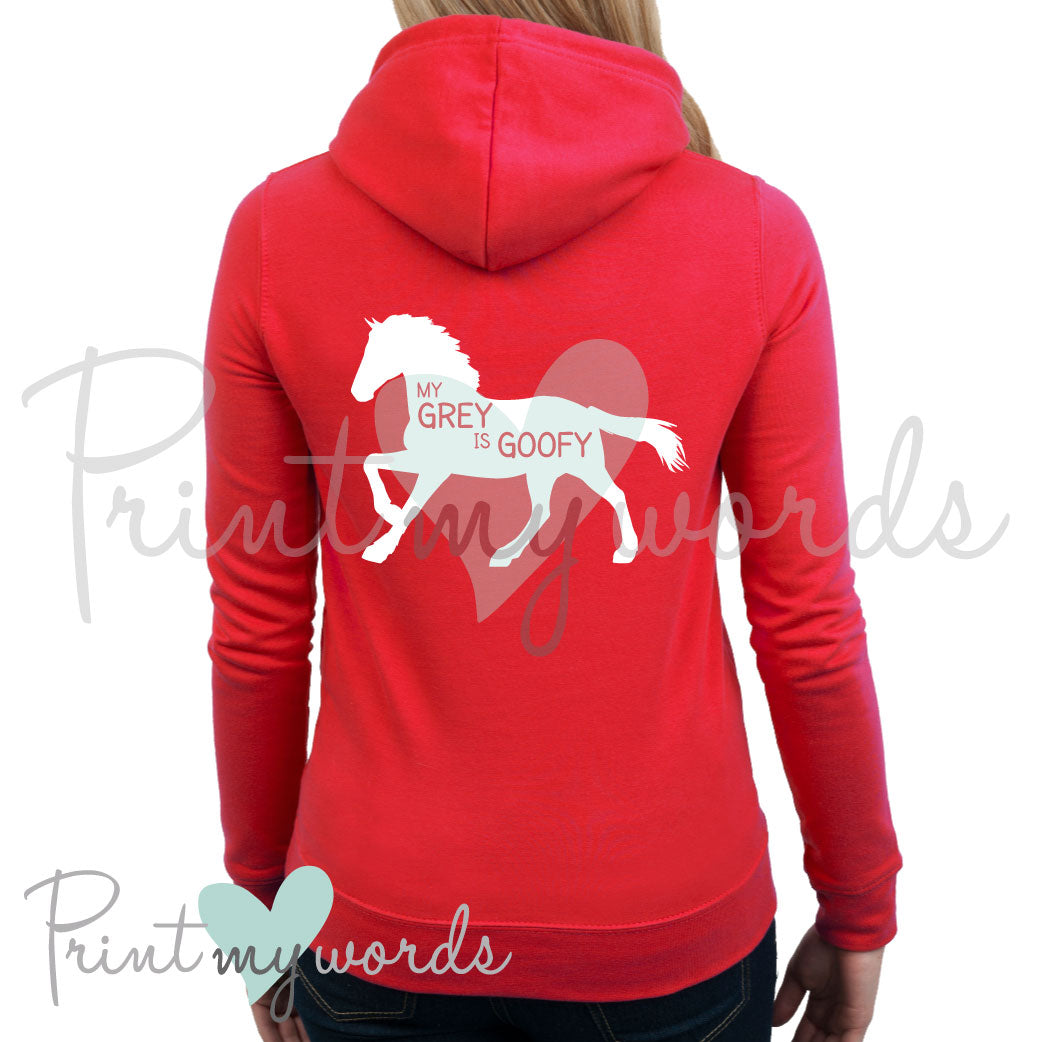 This hilarious equestrian hoodie is a fantastic addition to your wardrobe. It reads 'My Grey Is Goofy'