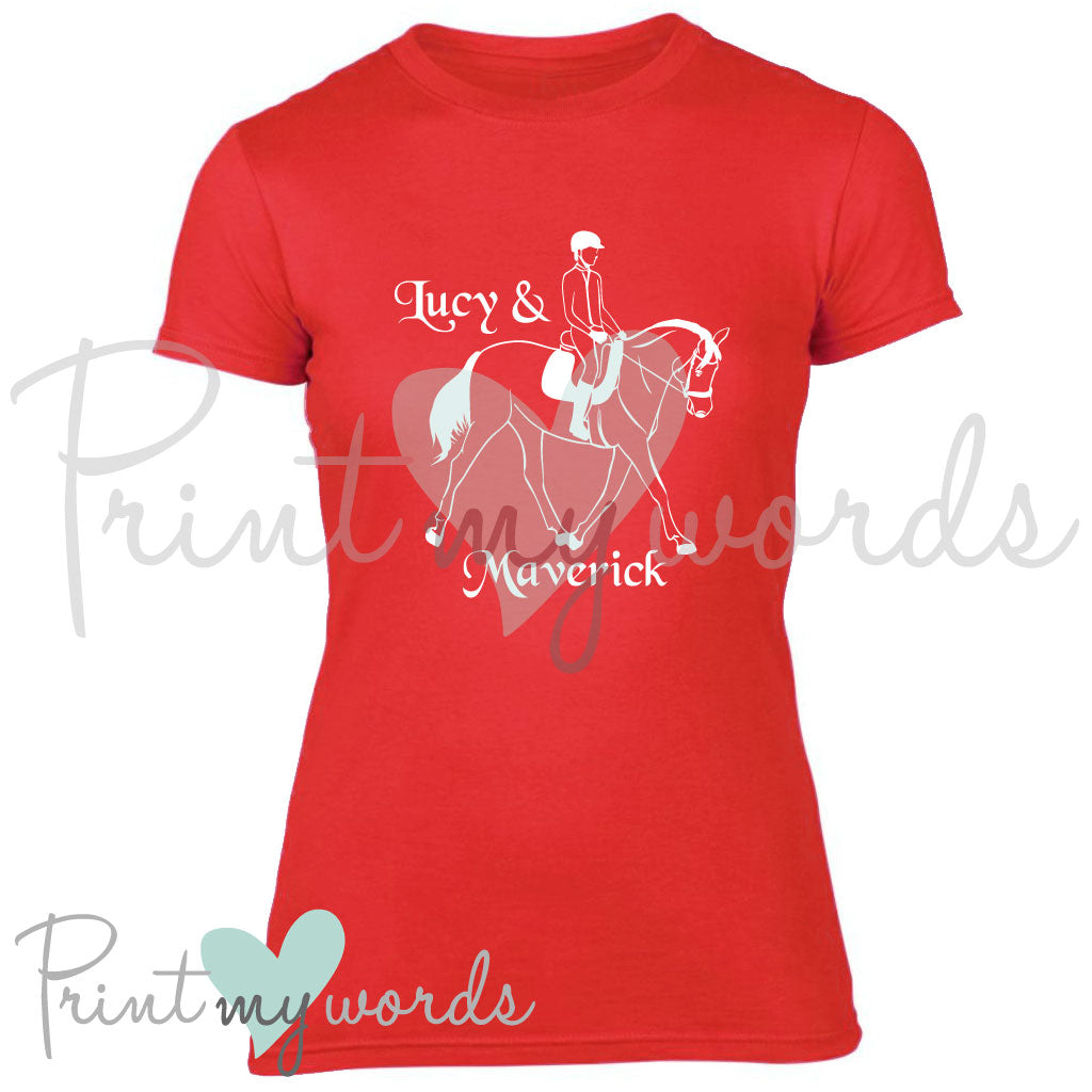 This gorgeous personalised equestrian t-shirt is printed with a beautiful silhouette of horse and rider. Personalised with names of your choice.