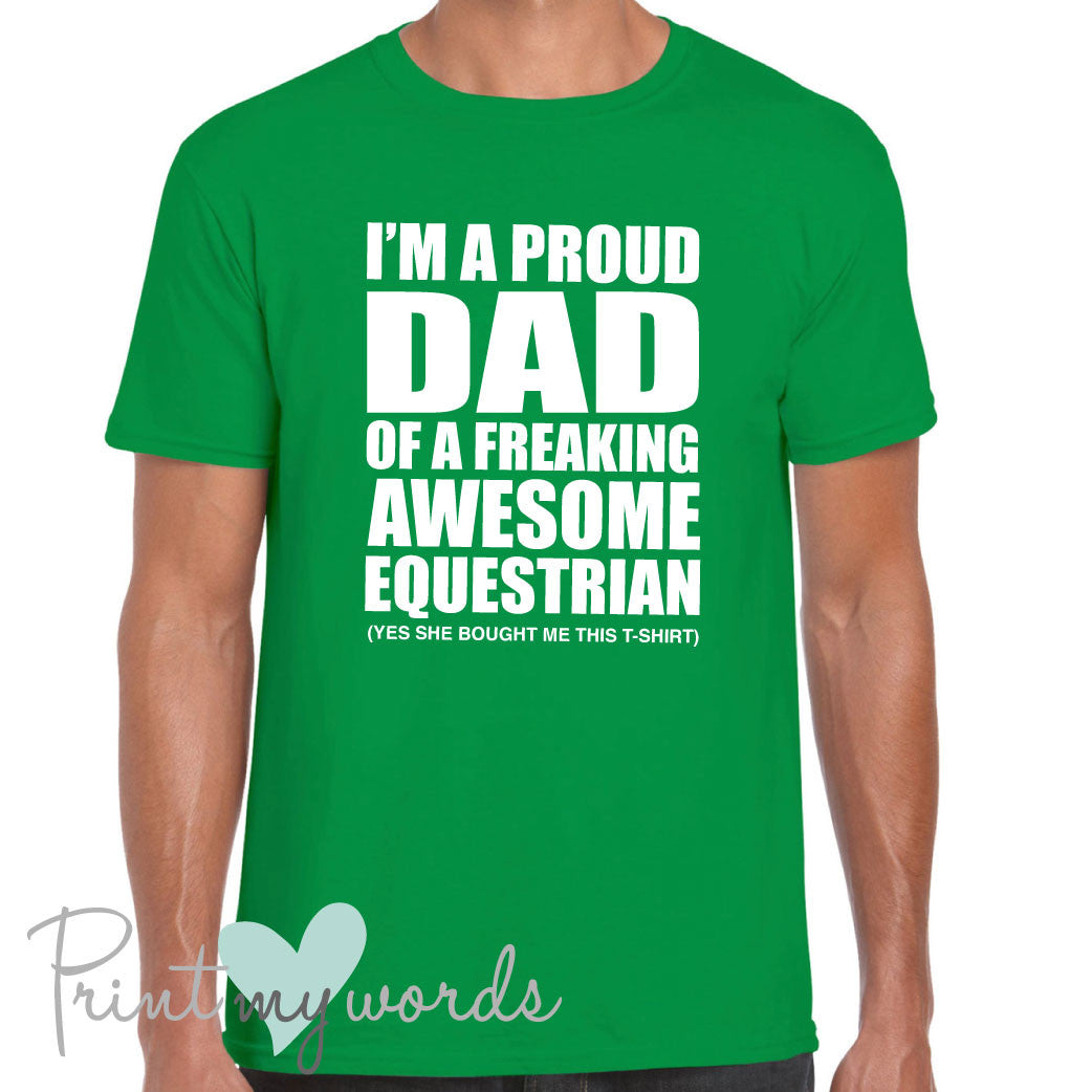 This is is the perfect t-shirt to buy for your dad! With a funny slogan that says 'I'm a proud dad of a freaking awesome equestrian (yes she bought me this t-shirt) Get everyone giggling with this hilarious design.