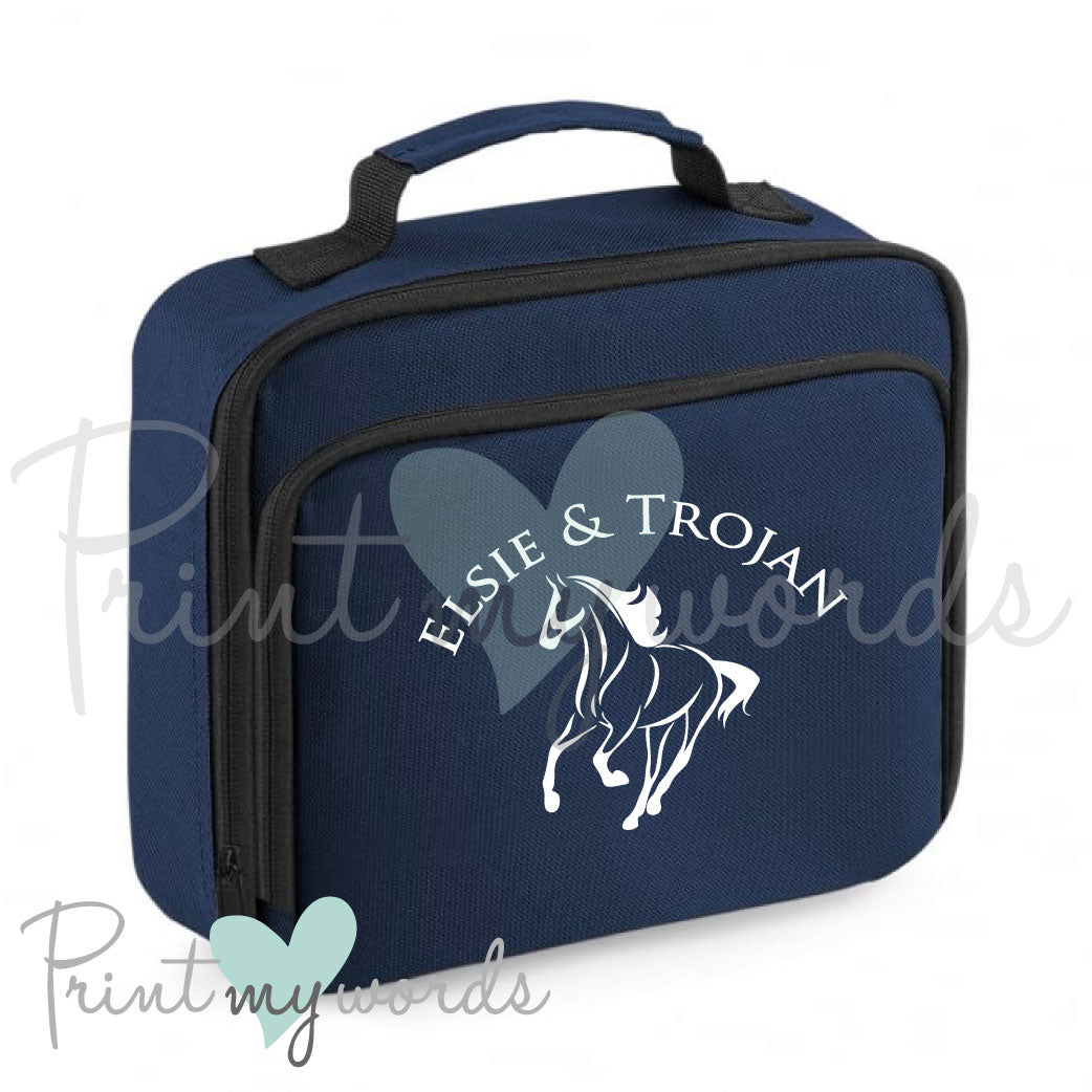 This personalised equestrian lunch bag is perfect for keeping your lunch cool at the yard. We will personalise this bag with the names of the horse and rider and a gorgeous graphic of a horse.