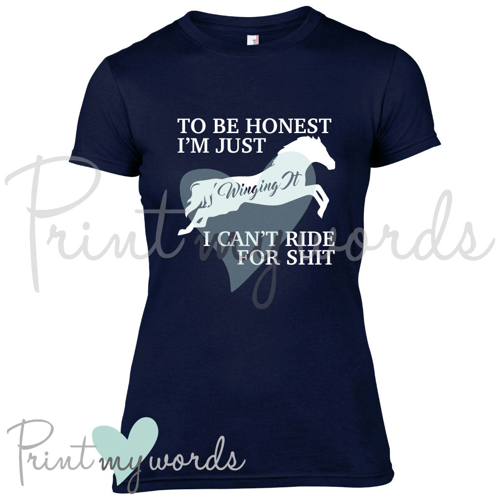 This hilarious equestrian tee is perfect for all horse owners and riders with a sense of humour. It reads 'To be honest i'm just winging it, I can't ride for shit'